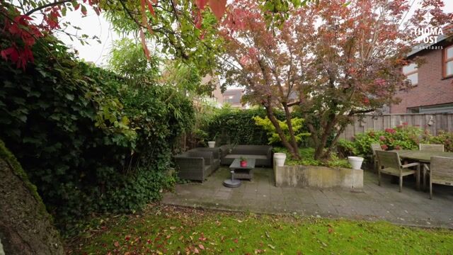 Buiten valt de zonnige achtertuin op, die door intieme begroeiing een gevoel van privacy biedt. De tuin is fraai ingericht met meerdere terrassen, ideaal om op warme dagen buiten te dineren of simpelweg tot rust te komen. Daarnaast is de ruim opgezette voortuin, omzoomd met een mooie haag, perfect voor kinderen om veilig te spelen. De groene omgeving en het prachtige bomenbestand dragen bij aan de algehele warme en rustige sfeer van deze bijzondere woonlocatie.
