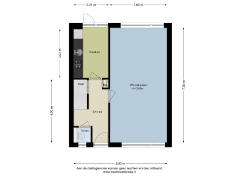 - 60 m² (9,70 meter diep en 6,27 meter breed)