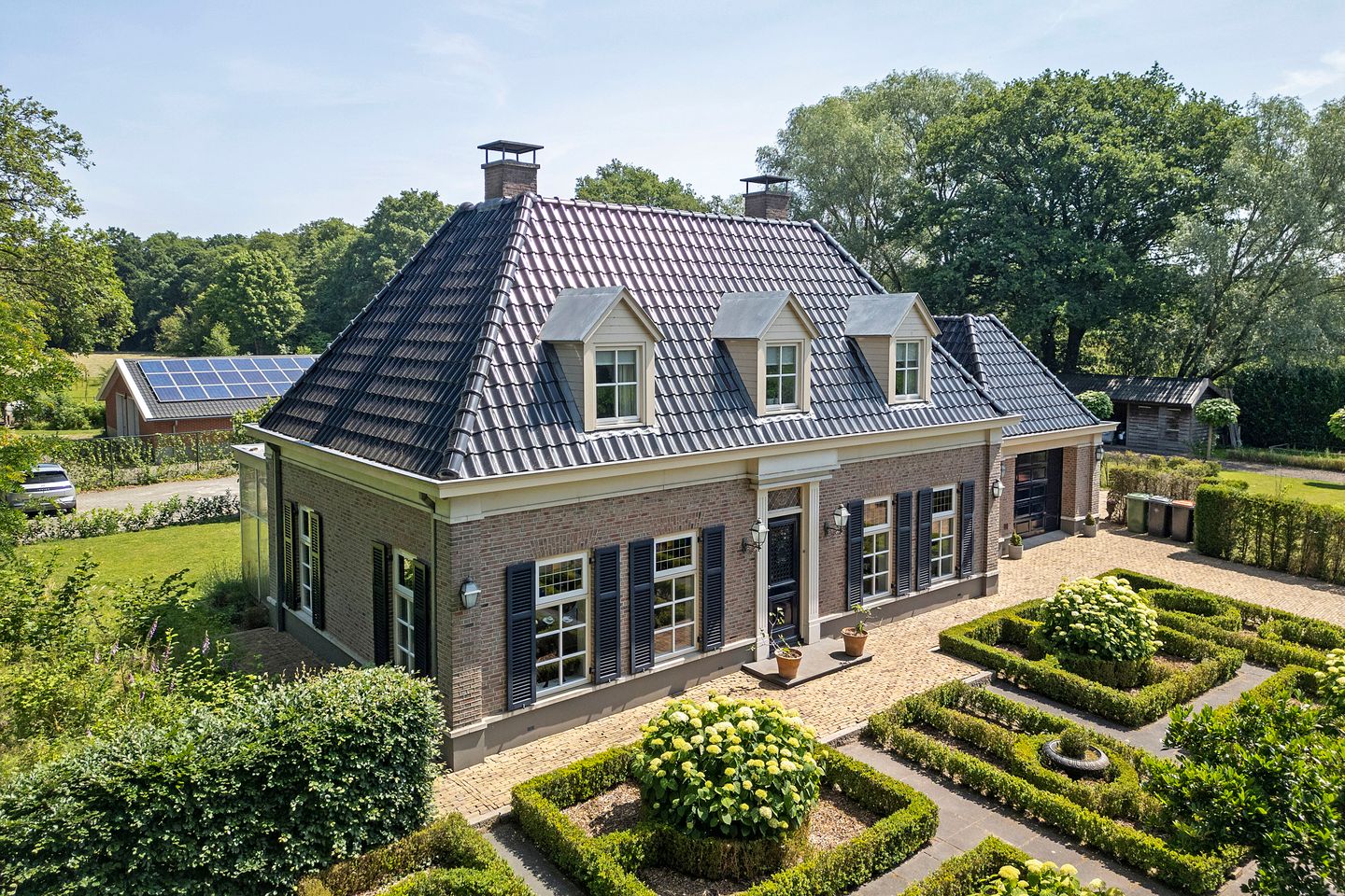 Vanaf de straat zie je al dat er achter de groene haag iets bijzonders schuilgaat. Pas wanneer je via de oprijlaan het erf betreedt en de dubbele poort achter je sluit, voel je: dit is niet zomaar een huis. Dit is een uniek landhuis, met oog voor detail ontworpen, onder architectuur gebouwd en met liefde bewoond.