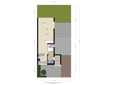 - 105 m² (10,20 meter diep en 10,30 meter breed)