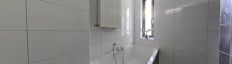 De overloop van de eerste verdieping voelt ruimtelijk aan en geeft toegang tot alle drie de kamers, terwijl de strakke, glanzende vloer door de hele verdieping zorgt voor een luxe uitstraling. De grootste slaapkamer ligt aan de voorzijde en is heerlijk licht dankzij de grote ramen. Aan de achterzijde vind je nog twee kamers die je helemaal naar eigen wens kunt invullen: van knusse kinderkamers tot een thuiskantoor of creatieve hobbyruimte. Pak die verhuisdozen dus maar snel uit en maak van elke kamer je eigen plek. Ook de badkamer is eigentijds en praktisch ingericht. De witte wandtegels geven de ruimte een frisse en lichte uitstraling, terwijl de zwarte betonlook vloertegels voor een stoer contrast zorgen. Hier beschik je over een ligbad om heerlijk in te ontspannen, een toilet en een wastafel.
