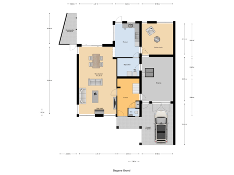 - Aangebouwde stenen garage, carport en parkeerplaats