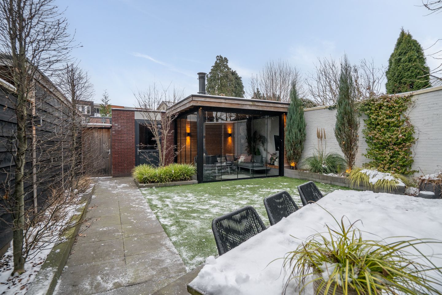 Buiten geniet je van een fijne en rustig gelegen tuin met veel privacy, overkapping, voorzien van een glazen wand en een houtkachel, ideaal voor lange avonden met familie en vrienden. Je hebt niet het gevoel dat je midden in de stad woont. Er is extra bergruimte naast de woning. De garage bevindt zich aan de achterzijde en er is gratis parkeren met laadpalen op het terrein direct achter de woning. Het mandelige terrein aan de achterkant van de woning geeft extra privacy en ruimte.
