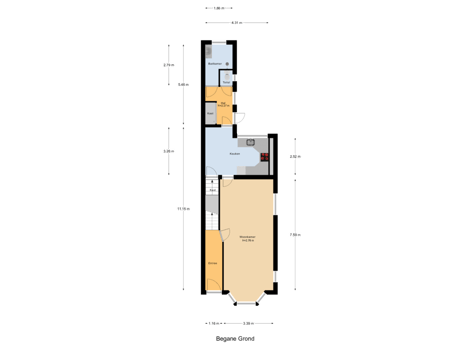- 29 m² (9,50 meter diep en 3,10 meter breed)