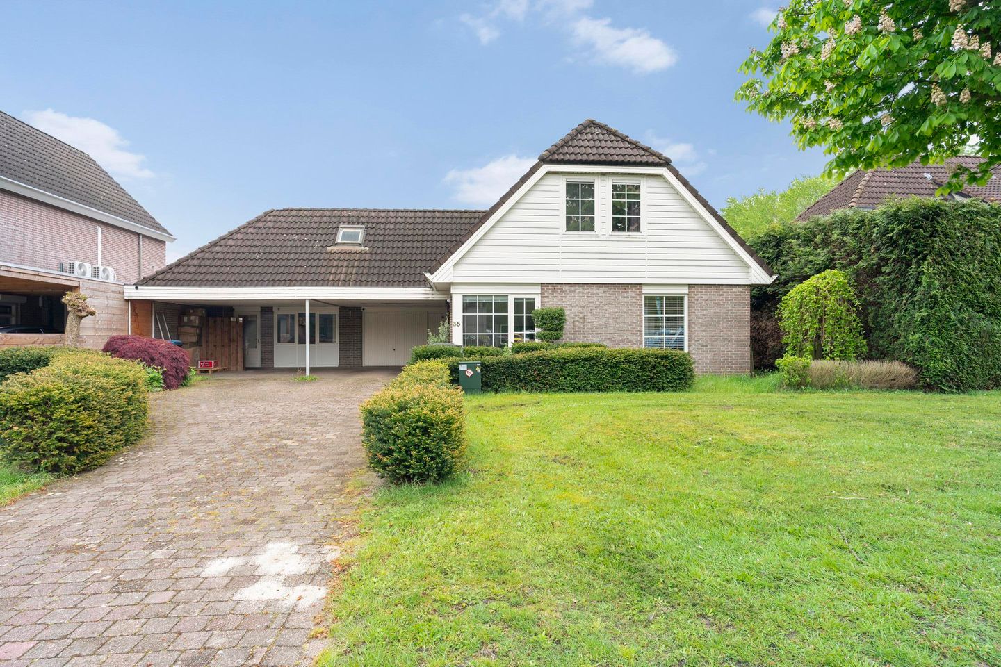 Gebouwd in 1990, beschikt de woning over een royaal woonoppervlak van 197 m² en is volledig geïsoleerd. De begane grond verwelkomt je met een ruime hal, een toilet met fontein, en een ruime L-vormige woonkamer met schuifpui en massieve gerookt eiken parketvloer. De in 2014 vernieuwde keuken is uitgerust met moderne inbouwapparatuur, zoals een vlakschermafzuigkap, inductiekookplaat, magnetron en koelkast. Aansluitend aan de keuken bevindt zich de bijkeuken met vaatwasser en opstelplaats voor wasmachine en droger. De inpandige garage biedt niet alleen extra opslagruimte, maar herbergt ook de HR Cv-ketel en boiler, beide uit 2003.