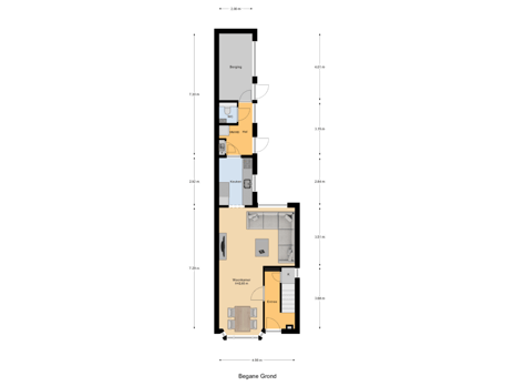 - 150 m² (25,00 meter diep en 6,00 meter breed)