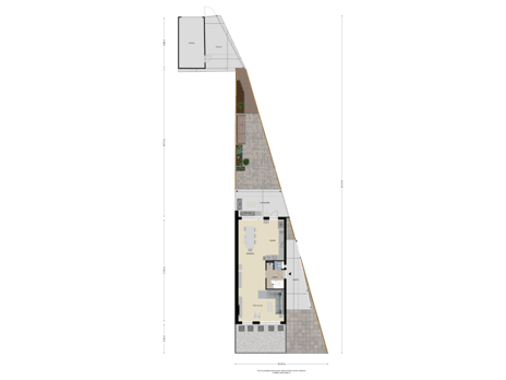 - 45 m² (15,00 meter diep en 3,00 meter breed)