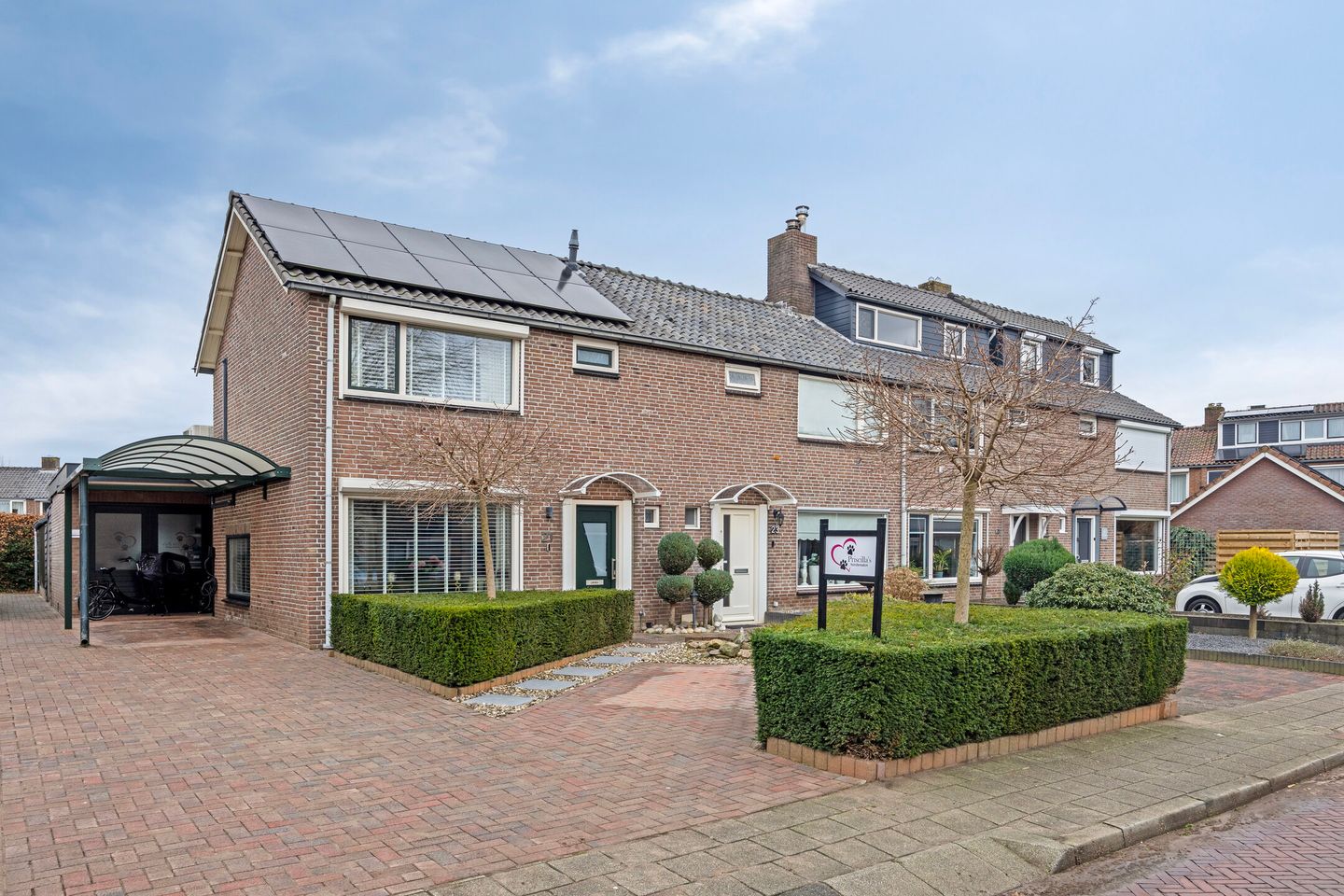 Genieten van de buitenruimte. De woning ligt op een perceel van 326 m2 en biedt een verzorgde tuin. Aan de voorzijde bevindt zich een royale oprit met carport, terwijl de achterzijde beschikt over een onderhoudsvriendelijke tuin met een prachtige veranda en een royale schuur. Hier kunt u heerlijk ontspannen en genieten van de rust en privacy.