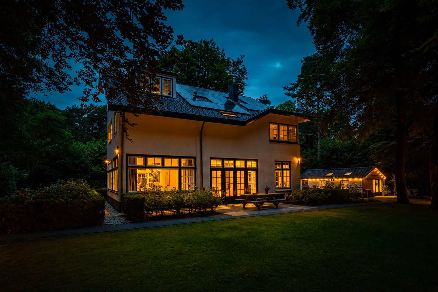 Het perceel van maar liefst 2.640 m² biedt absolute privacy en een heerlijke beleving van rust en natuur. De diverse terrassen, een sfeervolle veranda met houtkachel en een sauna maken het buitenleven hier tot een dagelijks genot. Daarnaast is er een thuiskantoor met airconditioning aanwezig. Dit multifunctionele bijgebouw is perfect voor wie ruimte zoekt en comfort en is ook goed te gebruiken als atelier, gastenverblijf of studio. Tevens vindt u hiernaast een praktische fietsenberging/schuur. Handig voor het stallen van de fietsen en het opbergen van tuinspullen. De royale oprit met afsluitbare houten toegangspoorten biedt niet alleen optimale privacy en veiligheid, maar ook meer dan voldoende parkeergelegenheid op eigen terrein. Er zijn twee afzonderlijke toegangen, één aan de Dellenweg en één aan de Belvédèreweg. Het bijgebouw, dat momenteel in gebruik is als kantoor, beschikt daarnaast over een eigen entree aan de Belvédèreweg, wat extra flexibiliteit en zelfstandigheid biedt.