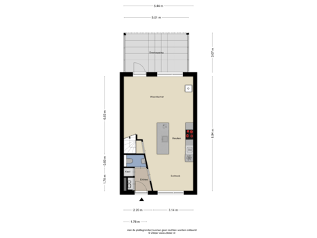 - 54 m² (9,34 meter diep en 5,82 meter breed)
