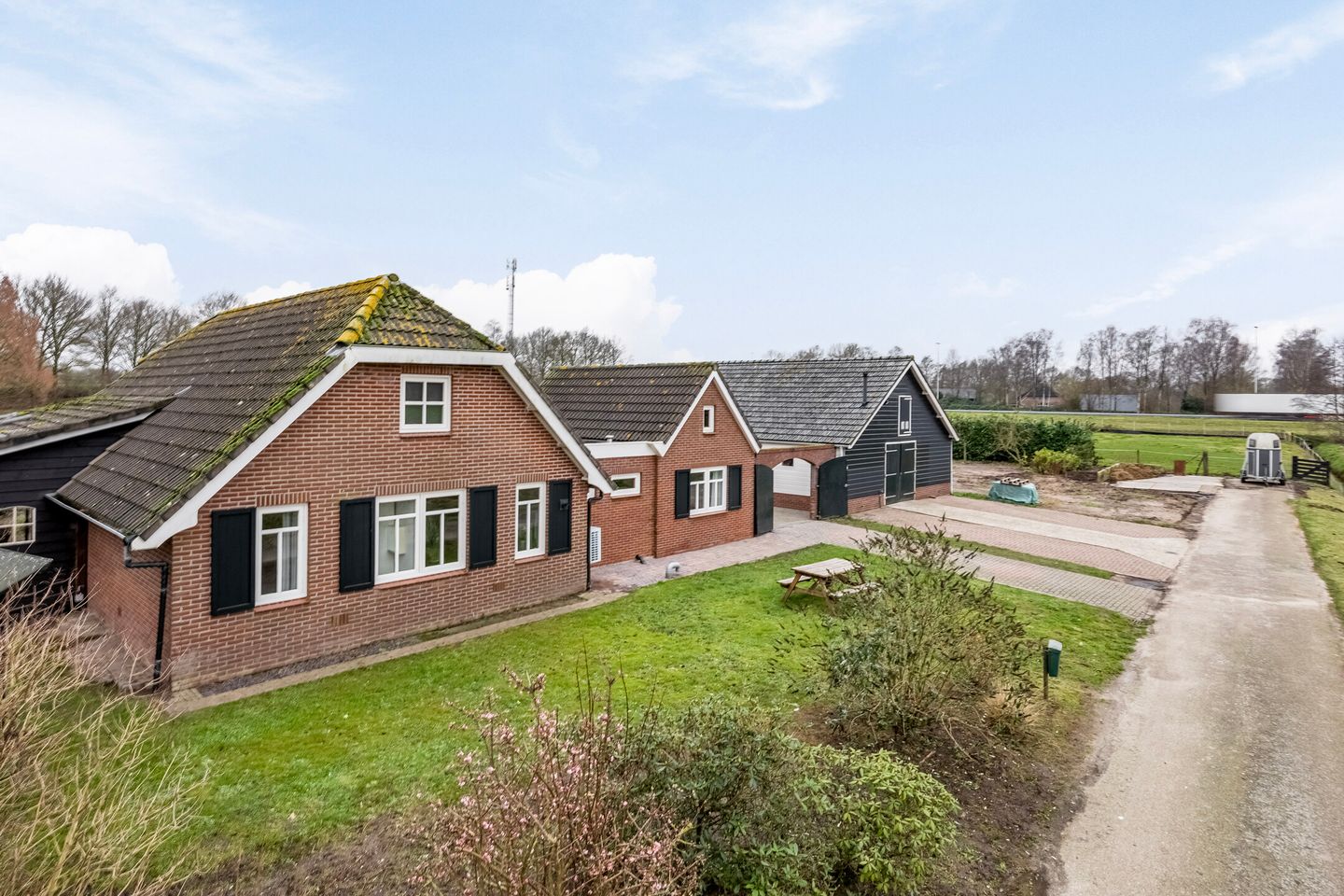 De tuin is fraai aangelegd rondom de woning en biedt volop privacy. Het perceel bestaat uit weilanden, een buitenbak en een royale veranda, ideaal voor de paardenliefhebber en wie van vrij wonen houdt.