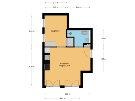 - 4 m² (2,00 meter diep en 2,00 meter breed)