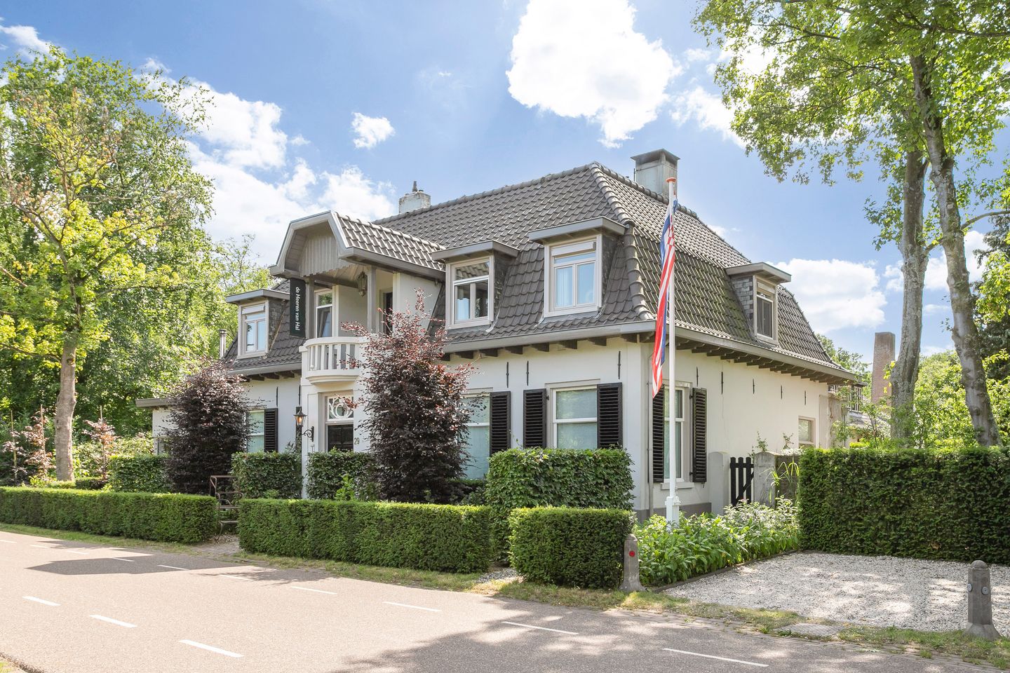 Begane grond: een prachtige hal met terrazzo vloer en hoog gestukadoord plafond geeft toegang tot de woonkamer. Deze kamer is afgewerkt met een plavuizen vloertegel, houten lambriseringen, een balken plafond en een schouw met open haard en geeft toegang tot de eetkamer met eikenhouten parketvloer, gelegd in visgraat motief en eveneens voorzien van lambriseringen, een schouw met kachel en een deur naar de zijtuin. De hal geeft verder toegang tot een prachtige eikenhouten trapopgang met daaronder de toegang tot een ruime kelder (circa 1,6 m hoog), een toiletruimte met wandcloset en fonteintje, de cv-ruimte met Nefit cv-combiketel (2015), de riante woonkeuken met terrazzo vloer, openslaande tuindeuren en een keukenmeubel met volop opbergmogelijkheden met porseleinen spoelbak, een Falkon gasfornuis met 2 ovens, een vaatwasser en een koelkast. De keuken geeft toegang tot een portaal met bergkasten en buitendeur. De inpandige woonunit bestaat uit een hal annex werk-/studieruimte met toegang tot de lichte woonkamer met houtkachel en openslaande deuren naar de tuin, een riante slaapkamer met vaste kasten en airco en een moderne badkamer met tegelvloer voorzien van vloerverwarming, een inloopdouche met glazen spatscherm, een wastafelmeubel en een urinoir.
