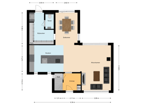 Aansluitend vind je de praktische bijkeuken met maatwerk-inbouwkasten, een werkblad met gootsteen, warmwaterboiler, witgoedaansluitingen en extra bergruimte. Ook bevindt zich hier het ruime en moderne toilet. Vanuit de bijkeuken loop je zo de tuin in.