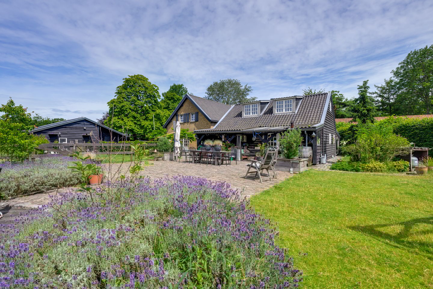 Het perceel van 5250 m2 biedt volop ruimte om te genieten op het ruime terras. Er is een buitenkeuken gesitueerd tegen de woning aan, een grote vijver, een paardenbak met stal en weides voor de paarden. Daarnaast is er een grote schuur van circa 55 m2, met twee verdiepingen, die ook als garage kan worden gebruikt en een grote oprit met 2 toegangspoorten. Door de ligging vanaf de weg is er veel privacy.