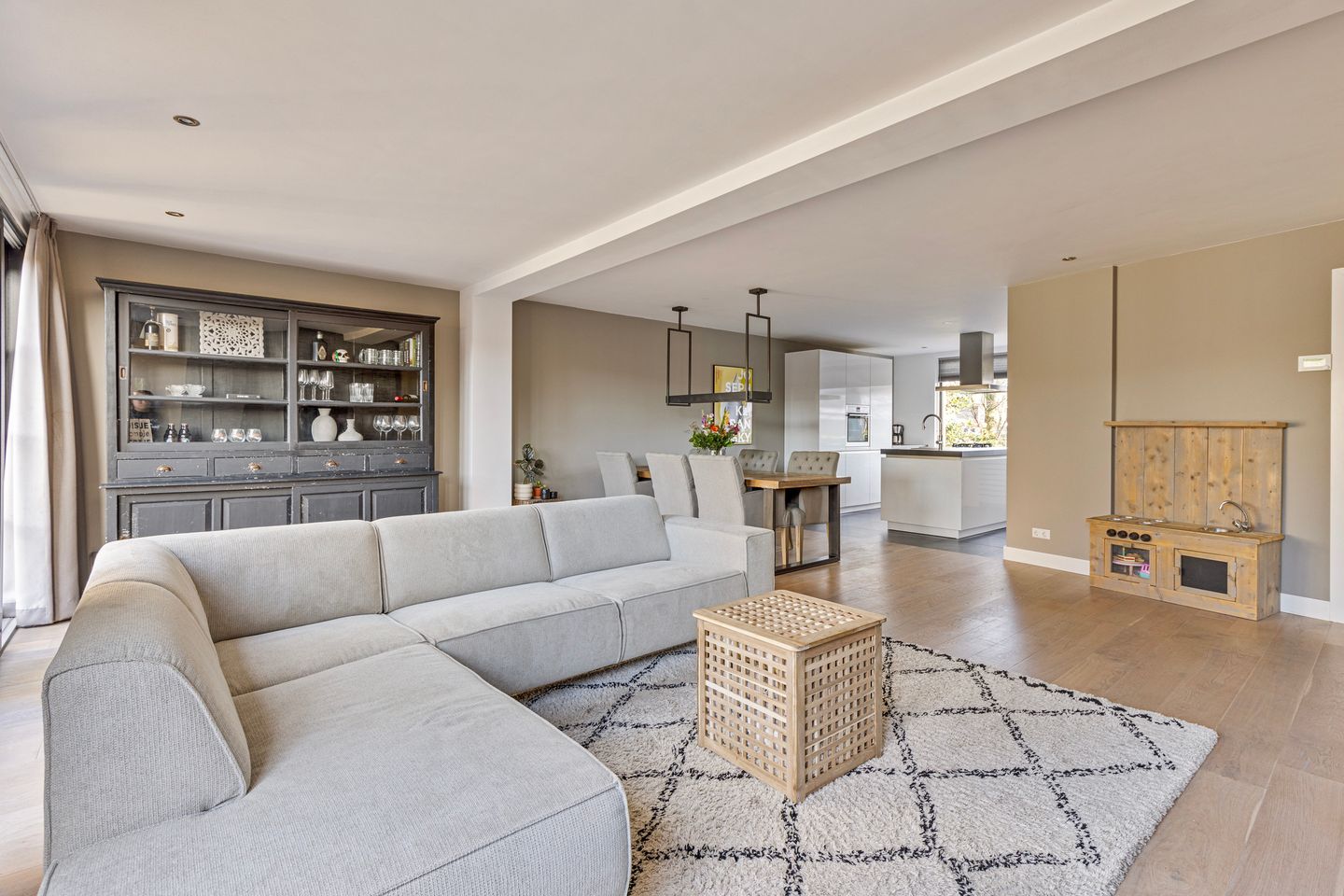 De woonkamer, gelegen aan de tuinzijde, is uitgebouwd en samen met de keuken maar liefst 53m² groot. Genoeg plek voor een gezellige eettafel én een comfortabele zithoek. Dankzij de grote ramen en schuifpui is het heerlijk licht binnen. Via zowel de schuifpui als de loopdeur loop je zo de tuin in. Perfect voor zomerse dagen: open de deuren en verbind binnen met buiten!