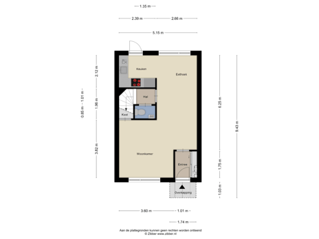 - 77 m² (14,69 meter diep en 5,25 meter breed)