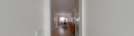 Via de hal stap je binnen in een woonkamer die meteen prettig aanvoelt. De laminaatvloer zorgt voor een nette, verzorgde basis en dankzij de grote ramen valt het daglicht rijkelijk naar binnen. De indeling biedt volop ruimte voor een comfortabele zithoek én een fijne eethoek waar je met gemak vrienden of familie ontvangt.