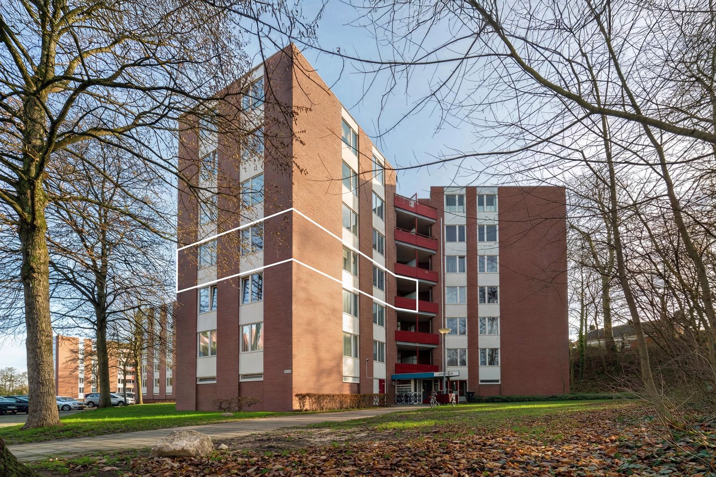 De woning beschikt over een ruime hal met toegang tot het separate toilet, bergkast en garderobe. De Z-vormige woonkamer is licht en comfortabel en biedt toegang tot het balkon aan de woonkamerzijde. Aangrenzend bevindt zich de keuken, voorzien van diverse inbouwapparatuur en eveneens met toegang tot het tweede balkon. Het appartement telt twee goed bemeten slaapkamers en een ruime, geheel betegelde badkamer met ligbad, douche, wastafelmeubel en tweede toilet. Daarnaast is er een praktische was-/c.v.-ruimte.