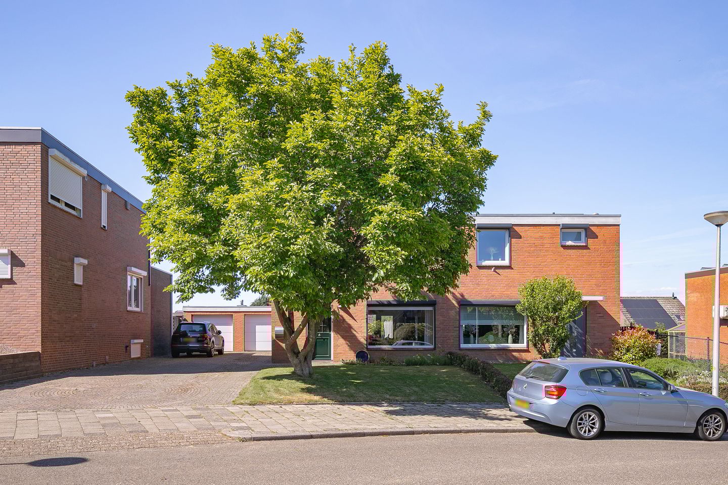 De fraai aangelegde, onderhoudsarme tuin is volledig omsloten en bereikbaar via de woonkamer, garage en oprit. De tuin beschikt over een royaal natuurstenen terras, een lager gelegen kiezelterras met leilindes en een overdekt zitgedeelte. Dankzij de ligging biedt de tuin uitstekende privacy én een goede bezonning. De naastgelegen garage is voorzien van een elektrisch bedienbare sectionaalpoort en extra bergruimte.