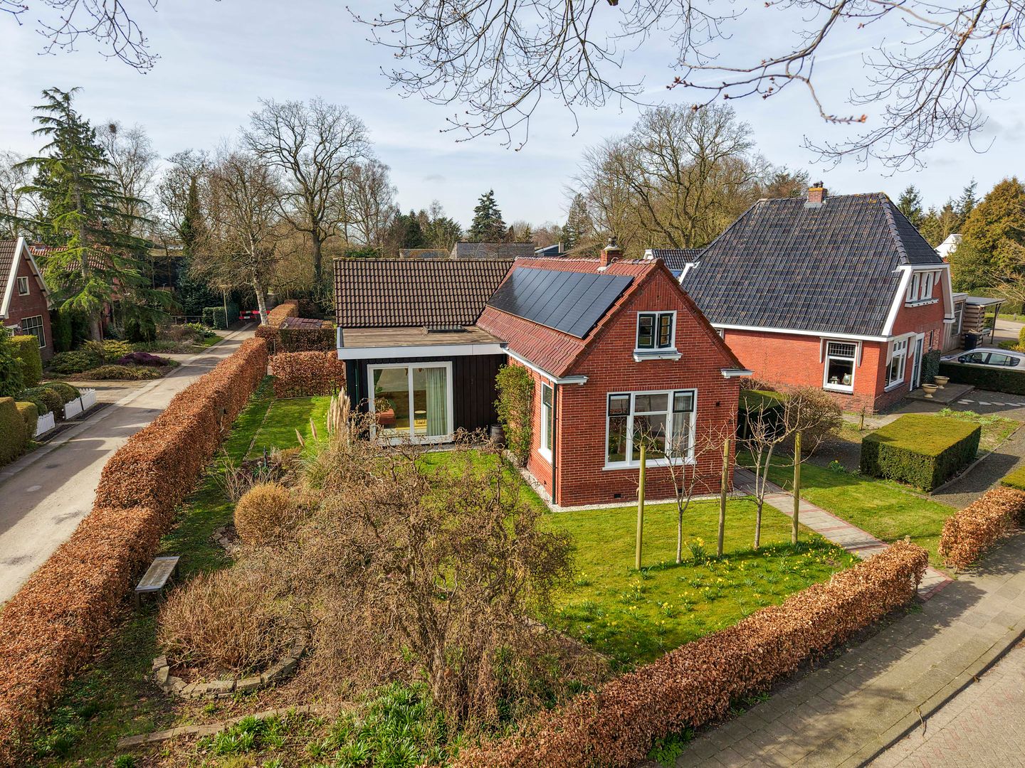 Ook buiten is dit huis een bijzonder geheel. De tuin is met veel aandacht voor biodiversiteit aangelegd en bestaat uit meerdere hoekjes en zitplekken. Vrijwel iedere maand bloeit er iets en de tuin biedt een fijne mix van groen, rust en privacy. De tuin is namelijk deels aangelegd door studenten van een mbo-opleiding en viel in de prijzen bij een tuinwedstrijd. Op het perceel vind je verder een vrijstaande houten garage, bergingen voor dieren en haardhout en parkeergelegenheid op eigen terrein.