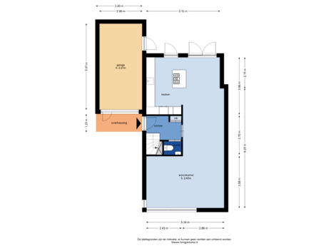 - 97 m² (11,00 meter diep en 8,80 meter breed)