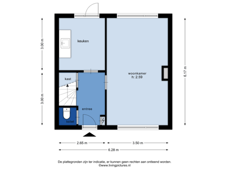 - 55 m² (8,50 meter diep en 6,50 meter breed)