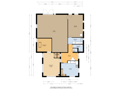 Deze informatie is door ons met de nodige zorgvuldigheid samengesteld, veelal aan de hand van de door verkoper aan ons ter hand gestelde gegevens en tekeningen. Onzerzijds wordt echter geen enkele aansprakelijkheid aanvaard voor enige onvolledigheid, onjuistheid of anderszins, dan wel de gevolgen daarvan. Dit geldt onder meer voor de opgegeven maten, oppervlakten, isolatie en ouderdom van technische installaties.