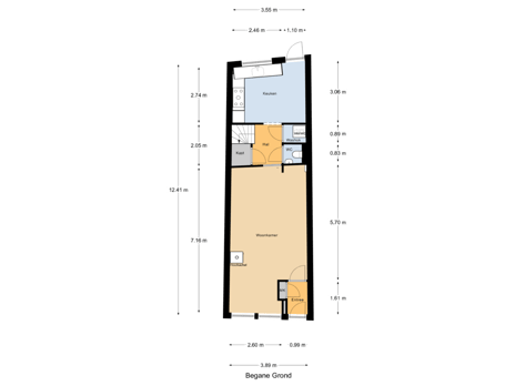 Het eetgedeelte ligt aan de straatzijde en voelt licht en gezellig, en via de tussenhal met de trap en de wasruimte loop je door naar de keuken.