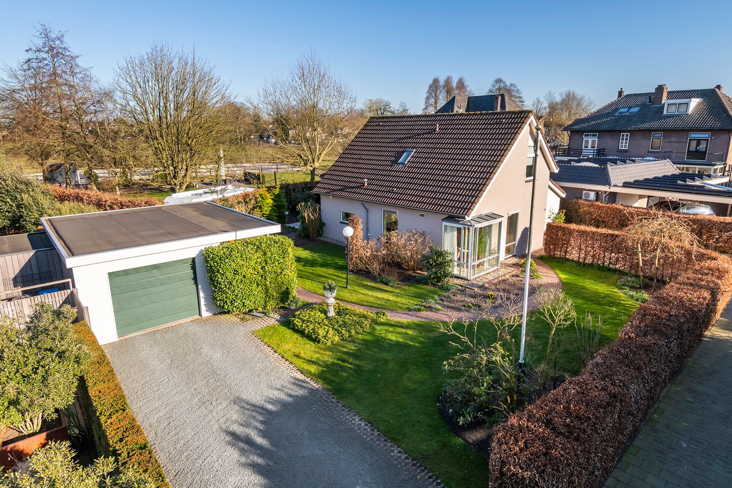 Prachtige, gelijkvloerse woning met veel licht, veel privacy en een nieuwe vrijstaande garage op toplocatie