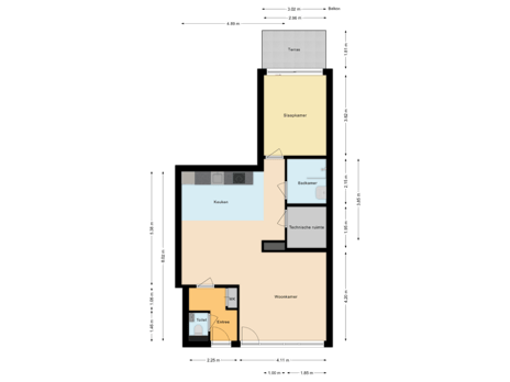 Entree / hal met meterkast en toegang tot het leefgedeelte en de losse toiletruimte.