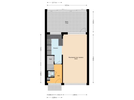 - 28 m² (5,50 meter diep en 5,00 meter breed)