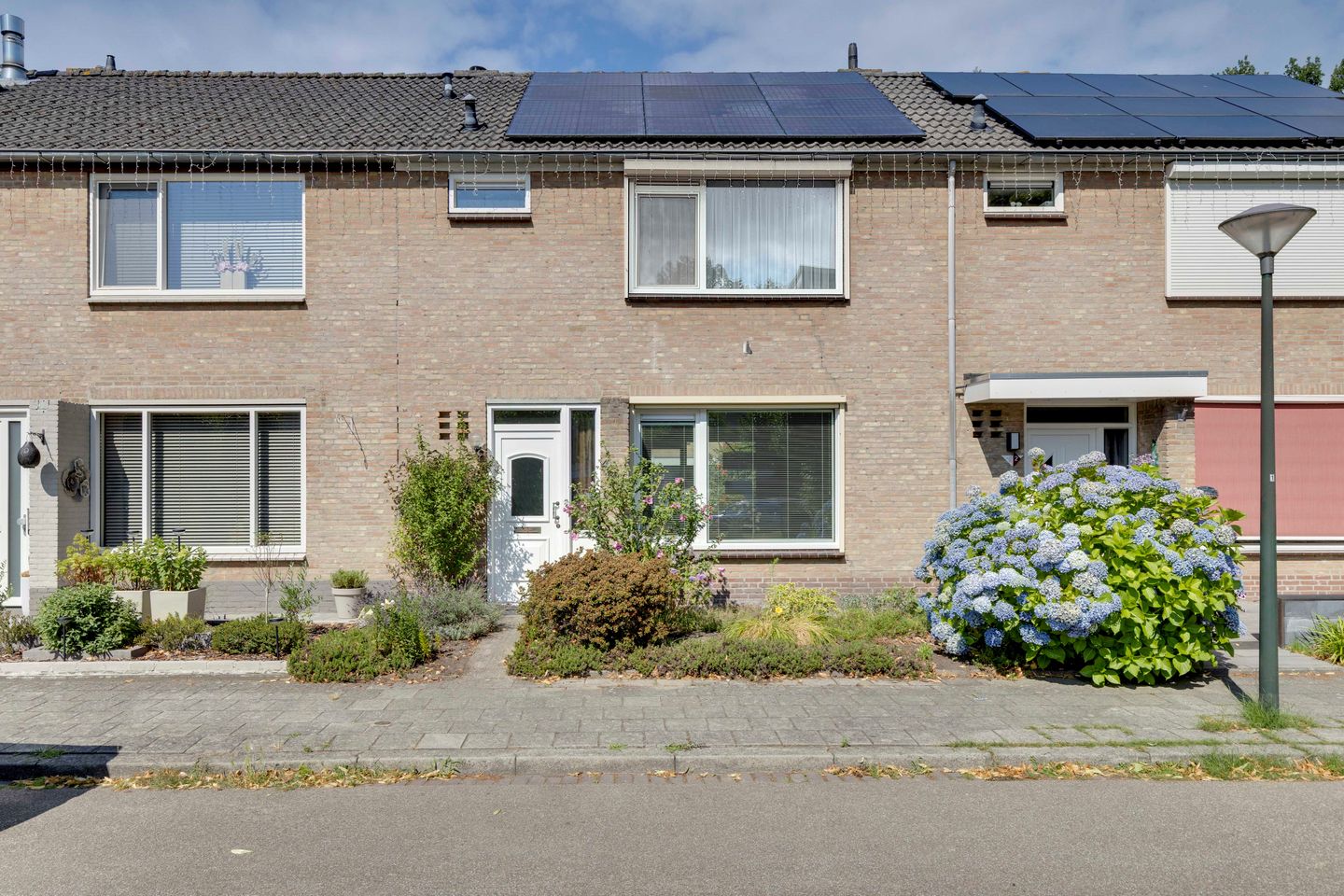 Welkom aan de Beringstraat 4 – een verzorgde en verrassend ruime tussenwoning in een kindvriendelijke woonwijk, waar comfort, duurzaamheid en een fijne leefomgeving samenkomen. De woning is uitstekend onderhouden, volledig voorzien van kunststof kozijnen, beschikt over maar liefst 12 zonnepanelen (2019) én biedt een heerlijke achtertuin met volop privacy. Een ideale plek voor starters, jonge gezinnen of iedereen die comfortabel wil wonen! FOR ENGLISH SEE BELOW Begane grond – Instapklaar en praktisch De woning heet je welkom met een nette, aangelegde voortuin. Via de hal, met vernieuwde meterkast (2017) en slimme meters, kom je in de gezellige woonkamer met veel natuurlijk licht dankzij de grote kunststof raampartijen. De elektrisch bedienbare rolluiken zorgen voor extra comfort en privacy. De afwerking is strak met een tegelvloer, stucwerk wanden en een modern spanplafond. De open keuken (2017) is voorzien van moderne inbouwapparatuur zoals een inductiekookplaat, vaatwasser, koelkast en vriezer. Een tweede keukenblok met een combi-oven biedt extra werk- en bergruimte – ideaal voor de fanatieke thuiskok! De keuken biedt verder directe toegang tot de achtertuin, Ook de toiletruimte is fraai afgewerkt met modern sanitair, een fonteintje en mechanische ventilatie. Eerste verdieping – Drie slaapkamers en gemoderniseerde badkamer Op de eerste verdieping bevinden zich drie volwaardige slaapkamers, allen voorzien van HR++ beglazing, kunststof kozijnen en handbedienbare rolluiken. De kamers zijn netjes afgewerkt met vloerbedekking en behangen wanden. De badkamer is gemoderniseerd en ingericht met een ruime inloopdouche, vrijhangend toilet, wastafelmeubel met spiegel en zowel mechanische als natuurlijke ventilatie. Ook hier is gekozen voor een hoogwaardige afwerking met een spanplafond en betegeling tot het plafond. Tweede verdieping – Volop ruimte en comfort Een vaste trap leidt naar de zolderverdieping met een praktische voorzolder waar de aansluitingen voor wasmachine en droger zijn geplaatst. Hier vind je ook de omvormer voor de zonnepanelen en de recent vernieuwde Nefit cv-ketel (huur, 2024). De zolderkamer is voorzien van een dakkapel met kunststof kozijnen, rolluiken en een airco-installatie, en biedt volop mogelijkheden als extra slaapkamer, werkruimte of hobbykamer. De dakisolatie zorgt voor extra comfort. Achtertuin – Privacy, groen en gemak De zonnige, op het westen georiënteerde, achtertuin is onderhoudsvriendelijk ingericht met een betegeld terras, gazon, volwassen beplanting en een elektrisch bedienbare zonneluifel. De tuin beschikt over een stenen berging met licht en elektra, een buitenkraan en een vrije achterom met extra brede poort en overkapping – ideaal voor fietsen, containers of tuinbenodigdheden. Locatie – Rustig én centraal De Beringstraat ligt in een rustige, kindvriendelijke woonwijk met speeltuinen, scholen en natuur op loopafstand. De uitgestrekte bossen van Geldrop liggen op steenworp afstand, net als winkels en andere dagelijkse voorzieningen. De goede bereikbaarheid naar Eindhoven, een bushalte om de hoek en uitvalswegen maken deze locatie extra aantrekkelijk. Algemeen: * Goed onderhouden tussenwoning * Volledig kunststof kozijnen met HR++ glas * 12 zonnepanelen (2019) * Moderne keuken en badkamer * Elektrische rolluiken en zonneluifel * Airco op zolder * CV-installatie uit 2024 (huur) * Kindvriendelijke en groene woonomgeving Interesse? Deze woning biedt een perfecte combinatie van duurzaamheid, wooncomfort en een fijne locatie. Maak snel een afspraak voor een bezichtiging en laat je verrassen door de ruimte en afwerking van deze instapklare woning! -------------------------------------------------------------------------------------------------------- ENGLISH Welcome to Beringstraat 4 – a well-maintained and surprisingly spacious terraced house located in a child-friendly residential area, where comfort, sustainability, and a pleasant living environment come together. This home is in excellent condition, fully equipped with maintenance-free plastic window frames, features no fewer than 12 solar panels (2019), and offers a delightful back garden with ample privacy. An ideal place for first-time buyers, young families, or anyone looking to live comfortably! --- Ground Floor – move-in ready and practical The house welcomes you with a neat, landscaped front garden. Through the hallway—with a modernized electrical panel (2017) and smart meters—you enter the bright and cozy living room, filled with natural light thanks to large plastic-framed windows. Electrically operated shutters provide extra comfort and privacy. The interior is sleek, featuring tiled floors, plastered walls, and a modern stretch ceiling. The open-plan kitchen (2017) is equipped with modern built-in appliances, including an induction hob, dishwasher, fridge, and freezer. A second kitchen unit with a combi-oven provides additional workspace and storage – ideal for the enthusiastic home chef! The kitchen also provides direct access to the back garden. The toilet room is stylishly finished with modern fixtures, a small sink, and mechanical ventilation. --- First Floor – three bedrooms and a modernized bathroom On the first floor, you'll find three generously sized bedrooms, all fitted with*HR++ glazing, plastic window frames, and manual shutters. The rooms are neatly finished with carpet flooring and wallpapered walls. The bathroom has been modernized and features a spacious walk-in shower, floating toilet, washbasin with mirror, and both mechanical and natural ventilation. Like the rest of the home, the finish is high-quality with full tiling and a stretch ceiling. --- Second Floor – space and comfort A fixed staircase leads to the attic floor, with a functional landing area that houses the washing machine and dryer connections. Here, you'll also find the inverter for the solar panels and the recently replaced Nefit central heating system (leased, 2024). The attic room 