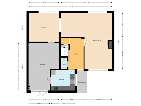 De woning beschikt over een ruime inpandige garage welke bereikbaar is via de keuken en tevens via de aanbouw aan de woonkamer. In de garage bevindt zich de meterkast (6 groepen+krachtstroom+2 aardleksckakelaars), de aansluitingen voor het witgoed en de omvormer voor de zonnepanelen. De garage leent zich ideaal voor het parkeren van een auto of het bergen van spullen.