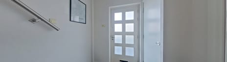 U komt binnen in een nette en verzorgde entree met toegang tot de toiletruimte, de trappenkast, de trapopgang naar de eerste verdieping en een deur naar de woonkamer.