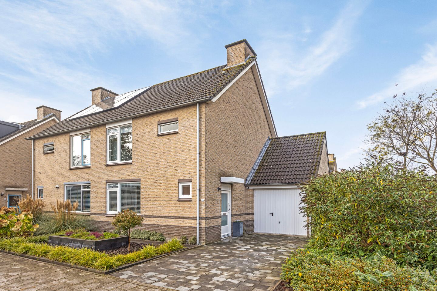 Keurig aangelegde voortuin met oprit naar de ruime garage. De garage, ± 21 m², beschikt over een keukenblok en een royale bergvliering over de gehele lengte van de garage.