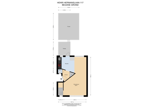 7 m² (2,20 meter diep en 3,00 meter breed)