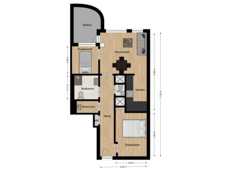 Vanuit de woonkamer is er toegang tot het balkon (ca. 7 m2), waar u heerlijk beschut kunt genieten van de buitenruimte.