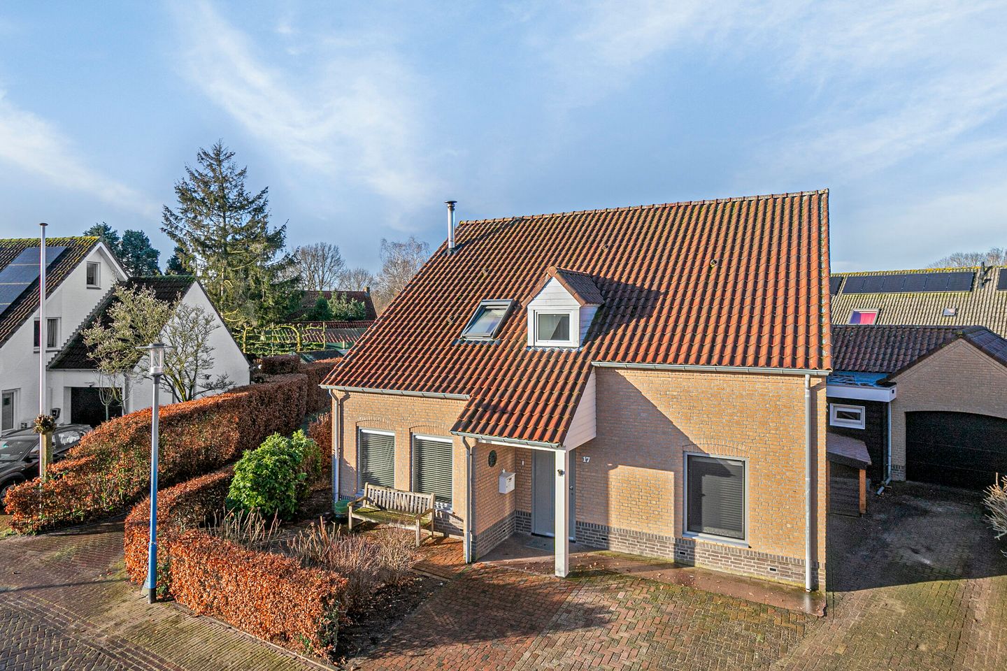 De oprit naar de garage biedt parkeergelegenheid op eigen terrein. De entree van het huis is in de voorgevel gelegen.