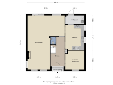 Royale hal/entree met een leisteenvloer, uitgebreide meterkast, toiletruimte met closet en fonteintje en toegang tot een extra kamer die als kantoor/werkkamer of speelkamer uitstekend gebruikt kan worden. In de hal de trappartij naar de eerste verdieping. Vanuit de hal toegang tot de woonkamer en de keuken. De ruime L-vormige woonkamer is voorzien van een mooie parketvloer, een moderne gashaard en een kunststof schuifpui naar de op het zuiden gelegen achtertuin. De dichte leefkeuken is voorzien van een groot keukenblok in een U-vormige opstelling met een Corian werkblad met een vierpits inductie kookplaat met tevens een wokbrander (gas), afzuigkap, vaatwasser, koelkast, grote heteluchtoven en een close-in-boiler. De keuken biedt ruim voldoende plaats voor het plaatsen van een eethoek. De bijkeuken is voorzien van de aansluitingen voor wasapparatuur en heeft een deur naar de achtertuin.