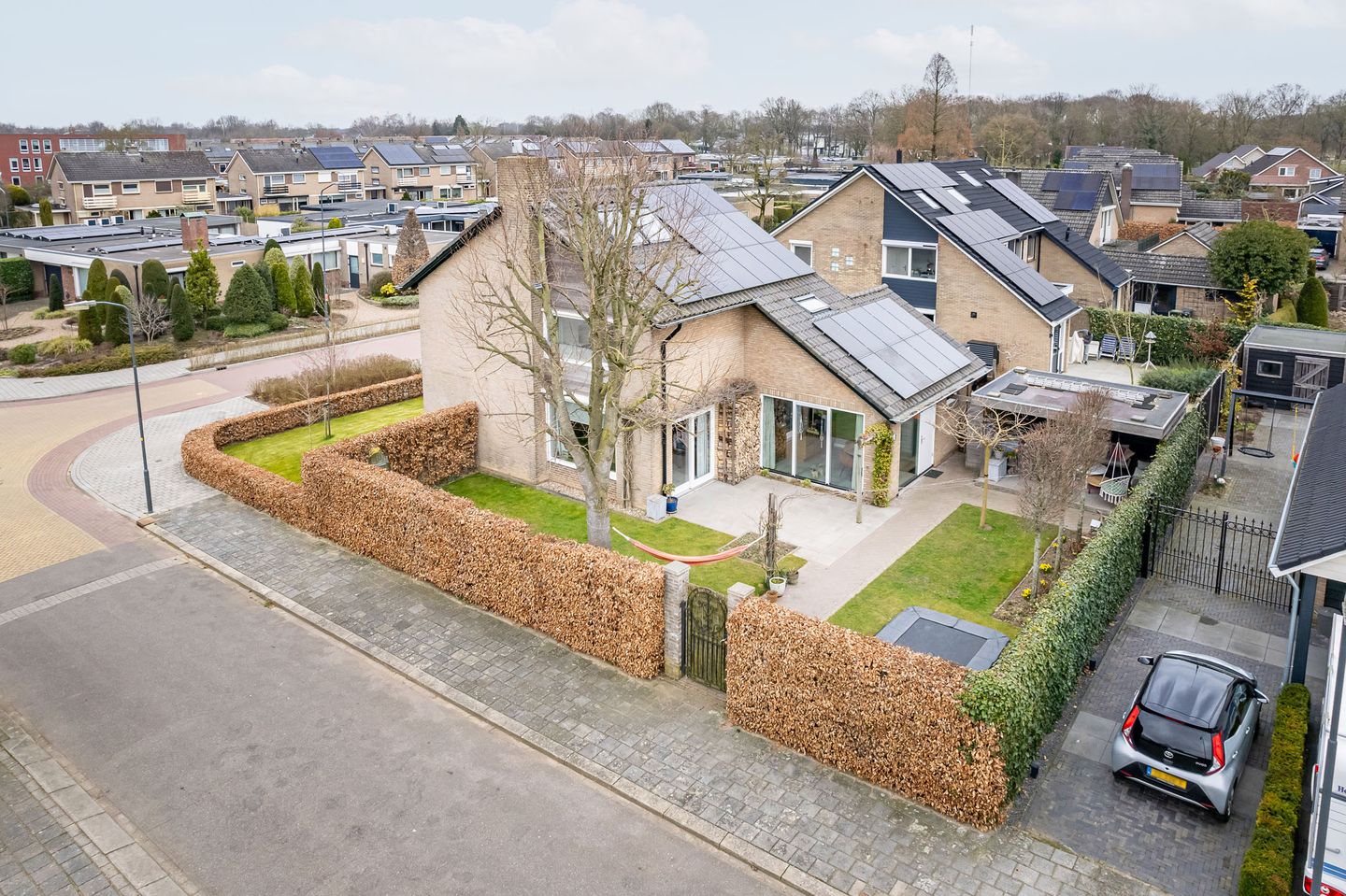 De dubbele oprit is vanuit de ruim opgezette en recent gerevitaliseerde Brederostraat te bereiken en is voorzien van luxe gebakken waaltjes bestrating. Op diverse punten is elektra aanwezig om middels 220V een auto op te laden. Hier kan eenvoudig een laadpaal worden aangebracht indien gewenst. De ruime hal geeft toegang tot de werkkamer, kelderkast, luxe toiletruimte en de woonkamer. De living blinkt uit in lichtinval en door de ligging op het zuiden is dit werkelijk een heerlijk warm en licht vertrek. De aanwezige rolluiken en de prachtige Tulpenboom in de tuin houden tijdens warme zomerdagen de zon juist weer buiten de deur en tezamen met de topkoeling van de warmtepomp kun je de woonkamer heel energiezuinig op circa 24-25 graden houden, heerlijk als het buiten 35+ graden is. De houtkachel met katalysator (voor grotendeels filteren van de fijnstof zodat de buren geen last hebben) is naast een eyecatcher ook een heerlijke warmtebron tijdens de echte koude dagen als de warmtepomp het moeilijk heeft. Ook de recent verbouwde tuingerichte leefkeuken is voorzien van veel licht. Het luxe keukenblok (2021) met spoel- en kookeiland zijn een lust voor het oog. De keuken is voorzien van moderne eiken fronten, luxe composieten werkblad, combimagnetron, koelkast, diepvries, inductiekookplaat met afzuiging, een quooker en ingebouwde zeep dispenser. Verder zijn er diverse grote bergladen aanwezig. Tijdens het kokkerellen en eten heb je in de keuken heerlijk zicht op je eigen groene tuin. Via een schuifdeur is de aangrenzende garage te bereiken die eigenlijk dienst doet als berging/bijkeuken bij de woning. Hier is ruimte voor bijvoorbeeld een extra koel-vriescombinatie en de riante schuifkastenwand geeft de mogelijkheid om veel spullen op te bergen die je toch graag bij de hand hebt. De halfopen zolder boven de garage is eveneens een perfecte berging en hier bevinden zich de omvormers van de zonnepanelen. Middels een elektrisch bedienbare roldeur is de garage eenvoudig vanuit de oprit te bereiken. De begane grond is grotendeels voorzien van vloerverwarming (als hoofdverwarming) en triple beglazing. Via de achterdeur bereiken we de achtertuin die gesitueerd is op het zonnige zuiden. De veranda is in stijl aangebouwd en biedt voldoende ruimte om heerlijk te vertoeven bij een beetje mooi weer. Enkele (dak) platanen zorgen dan weer voor schaduw tijdens de echt hete dagen. Verder zijn er enkele gazons, borders, een trampoline, een vlonder met waterpartij om de tulpenboom en een 2e terras aanwezig. In de tuin ervaar je optimale privacy en de tuin is onzichtbaar afgezet met gaas en een afsluitbare smeedijzeren poort.