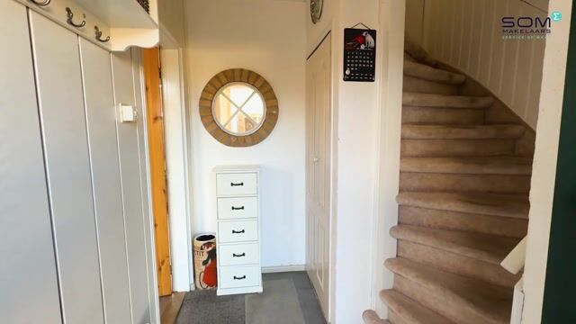 Via de fraai aangelegde voortuin, die rijk is aan sierbestrating met keurige borders aan de zijkanten, bereik je de sierlijke voordeur. Eenmaal binnen kom je eerst terecht in een ruime entree. Hier vind je rechts achtereenvolgens de toegangsdeur tot een compleet betegelde toiletruimte (met staand toilet en fonteintje), de trapopgang met vloerbedekking en tenslotte een grote trapkast.