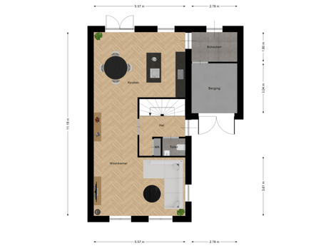 De woning beschikt op de begane grond van een ruime woonkamer, gelegen aan de voorzijde van de woning. De woonkeuken aan de voorzijde biedt genoeg plaats voor een kookeiland en een ruime eethoek. Het is helemaal aan jou. Tevens geniet je hier volop van het uitzicht over de Kolk en het groen, dit wil je toch? Naast de woning tref je een berging met daarachter een bijkeuken, erg praktisch en een waardevolle toevoeging voor de woning.