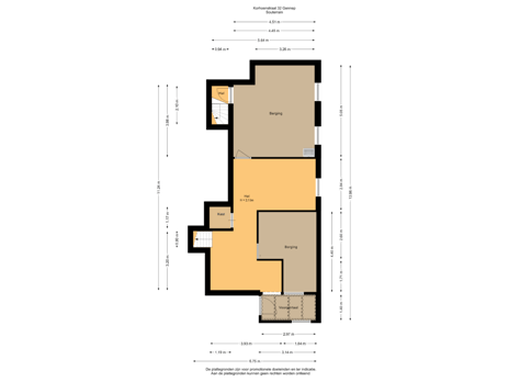 Begane grond: Bij binnenkomst in de hal treft u het toilet en de toegang naar het souterrain. Vanuit de hal bereikt u via een trap met 5 treden de drie slaapkamers.