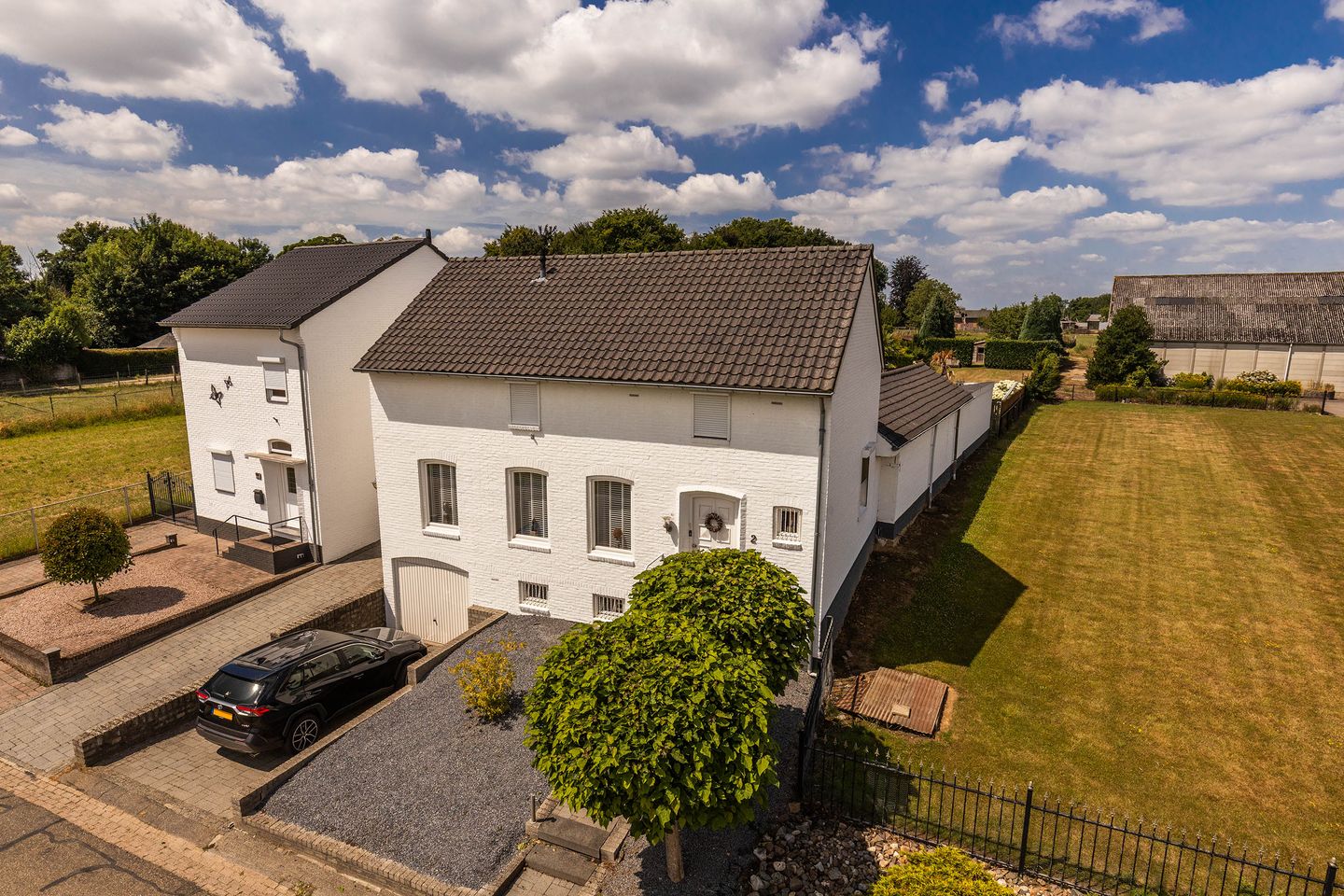 De woning heeft een fraai aanzien door de hogere ligging ten opzichte van het straatniveau. Aan de voorzijde biedt via een tweede oprit aan de zijkant van de woning een zijingang voor rechtsteekse toegang naar tuinterras en er is de oprit naar de drive-in garage, alsmede uiteraard het toegangspad richting de voordeur.