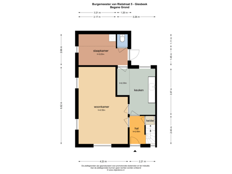 BEGANE GROND: Entree, hal met trapopgang, kelder/meterkast, woonkamer, woon/eetkeuken voorzien van basiskeukenopstelling, bijkeuken annex extra kamer met wasmachine aansluiting, toilet, toegang tot tuin.