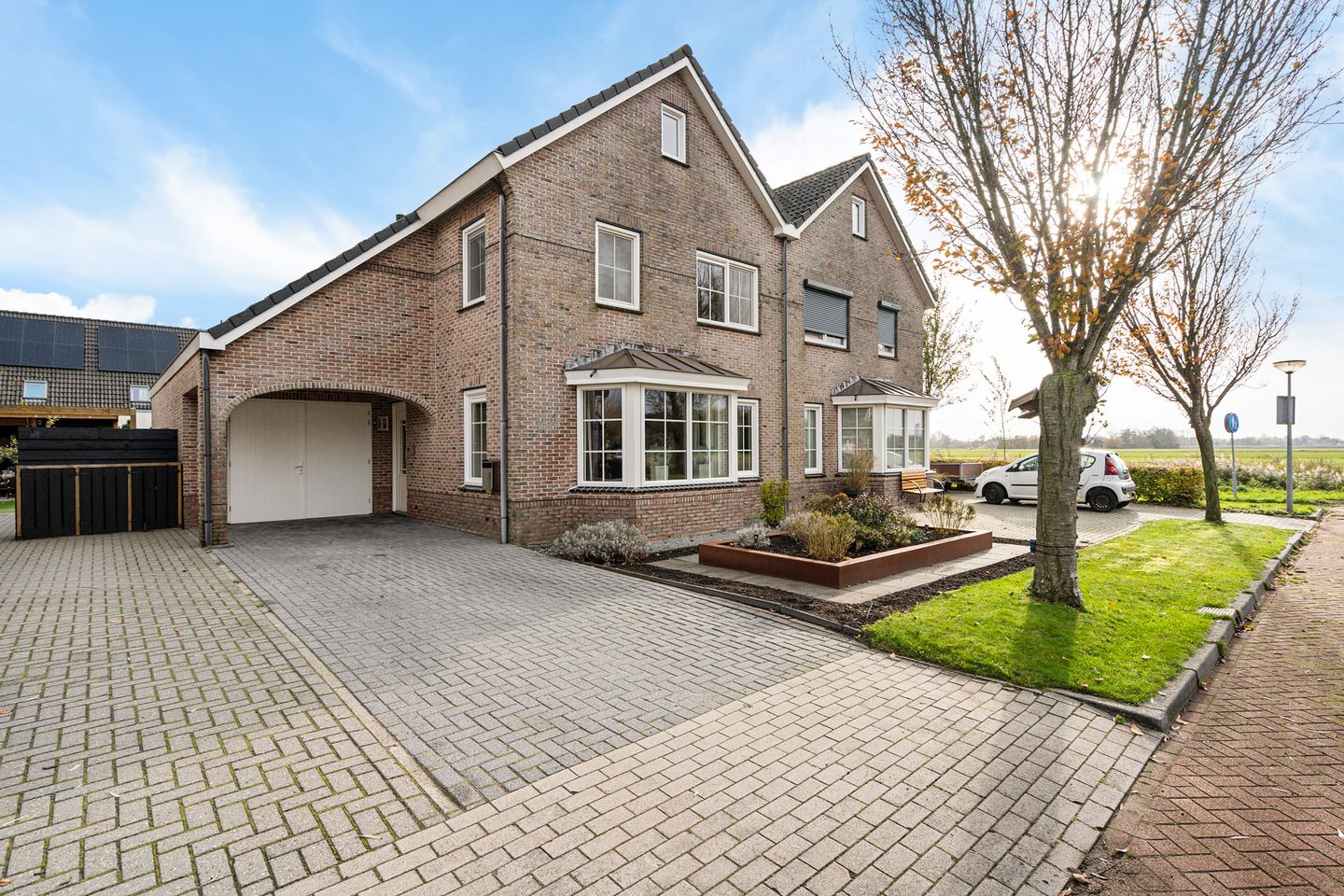 Begane grond: entree, hal, toilet, meterkast, garderobe, trapopgang naar de verdieping. Voorts de ruime living van ca. 55 m² voorzien van een houten vloer met een fijne, zonnige erker met uitzicht over weilanden. De half open keuken met kookeiland is voorzien van de benodigde inbouwapparatuur waaronder een 5- pits gaskookplaat met afzuigschouw, koelkast, combi-magnetron en een vaatwasser. Via de naastgelegen, royale, bijkeuken komt u in de volledig geïsoleerde garage van ruim 25 m².