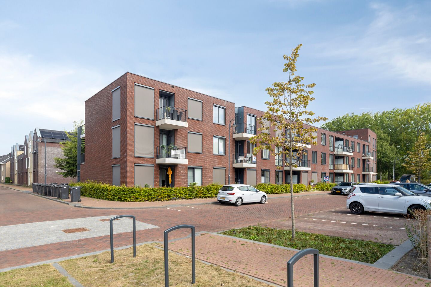 Naast de inpandige berging in de woning beschikt het complex over een gezamenlijke fietsenberging. Parkeren kan op het terrein aan de achterzijde van het gebouw, waar voldoende plaatsen beschikbaar zijn voor bewoners.