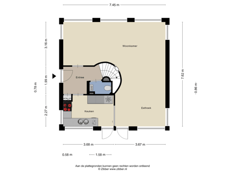 Via de voortuin en de eigen oprit, waar u eenvoudig uw auto kunt parkeren, bereikt u de entree aan de zijkant van de woning. Hier vindt u tevens de toegang tot zowel de achtertuin als de garage. Zodra u binnenkomt, staat u in de hal. Vanuit hier heeft u toegang tot de woonkamer, de keuken, de toiletruimte en de trap naar de eerste verdieping.
