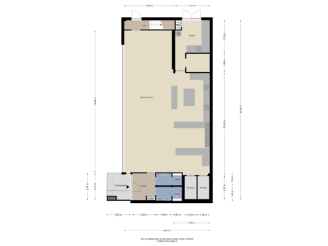 - 22 m² (5,22 meter diep en 4,31 meter breed)